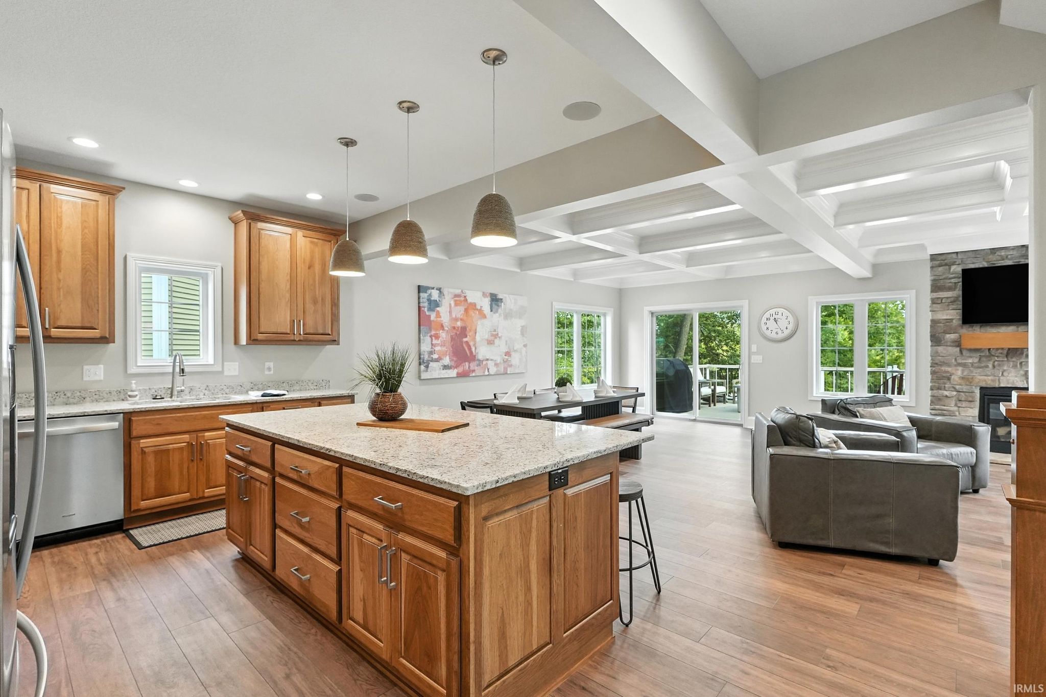 With 25+ short-term rental bookings already in place for 2026, this Lake James home delivers built-in income potential and the flexibility to enjoy as your own retreat. Offering over 3,300 sq ft with parking for 10, this 2-story property blends comfort, efficiency, and timeless design. The open main level features an expansive kitchen with a 4×8 island, Classic Marble counters, and dining overlooking the water. Coffered ceilings and a fireplace anchor the living area, while the primary suite offers serene channel views, a spa shower, and walk-in closet. Built with Andersen windows, 6-inch insulated walls, zoned HVAC, and a 20 kW generator. The walk-out basement adds a wet bar, second fireplace, and direct water access. TimberTech decking, Westbury railings, and a river rock seawall complete this turnkey lakefront opportunity.
